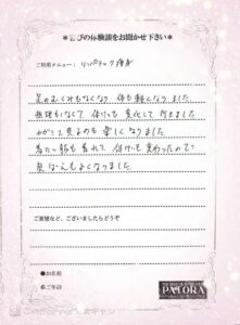 無理なく通ってくださり、体だけでなく気持ちまで前向きに変化されたお客様