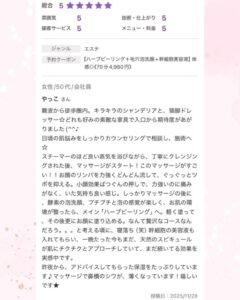 大人気のハーブピーリングを体験して下さったお客様よりとっても素敵な口コミを頂きましたのでご紹介させて頂きます!