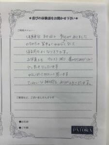 このお客様は日頃座って、ほぼ事務作業が多い