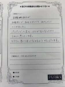 インナーケアとお家でもできることしっかりしてくださり、定期的にサロンにもお越しくださり
