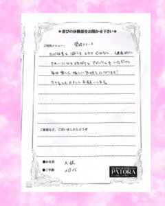 こんにちはパトラ三宮店です!! お客様からお喜びのお声を頂きました!こちら30代の骨格リリースでお通いのお客様になります! 首 肩、肩甲骨周りがスッキリ! これからも美のサポート全力でさせて頂きます!