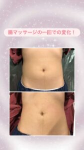 こんにちはパトラ三宮店です♪ こちらのお写真は腸マッサージケアの一回での変化になります! 腸マッサージで腸が正しい位置に戻ることでぽっこりお腹や便秘の改善にもなります! 皆様もぜひ一度パトラのケアをご体感くださいませ!