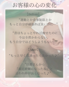 その中でも綺麗になることを諦めずに、ご自身の悩みに向き合ったことが素晴らしいこと♪