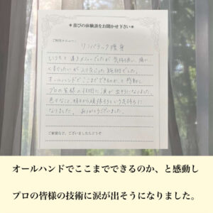 本日はボディケアでお通いのお客様より素敵なお声をいただきましたので、