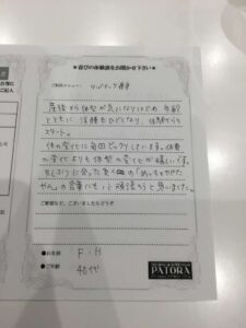 産後からの体型の変化や浮腫みに悩まれてご来店されました。