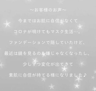 フェイシャルで通われているお客様から嬉しいお声を頂きました♪