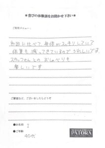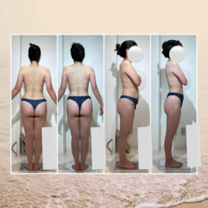お客様のお身体の変化です!身体のラインが気になり、ケアもしっかり通い、お客様自身もお家でできることをした結果こんなにも体がスッキリしました!