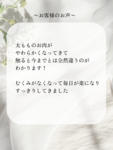 U様は長年コンプレックスだった太ももがやわらかくなってきて、