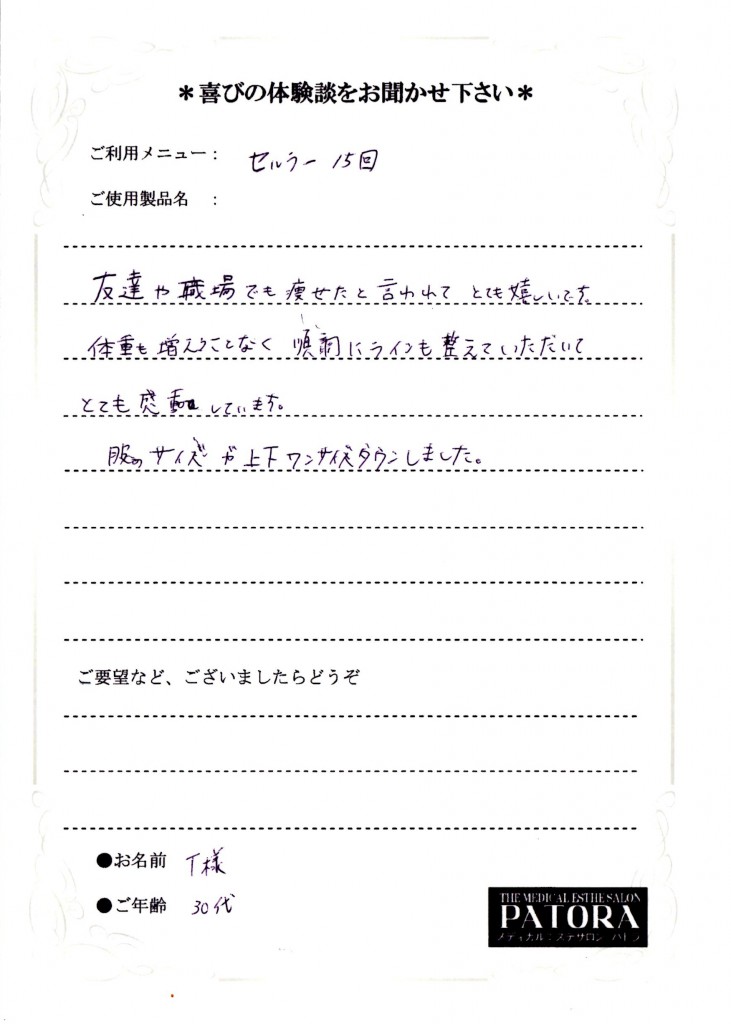 T様からコメントも頂きました!