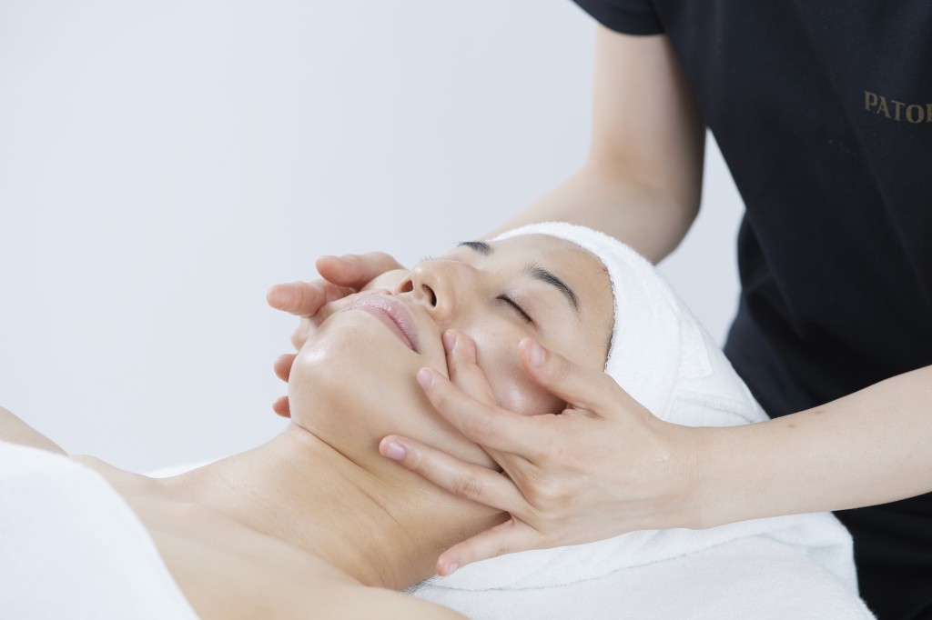 お顔の筋肉をゆっくり解した後に、さらに奥の固くなった筋肉を解して老廃物を流しやすくして