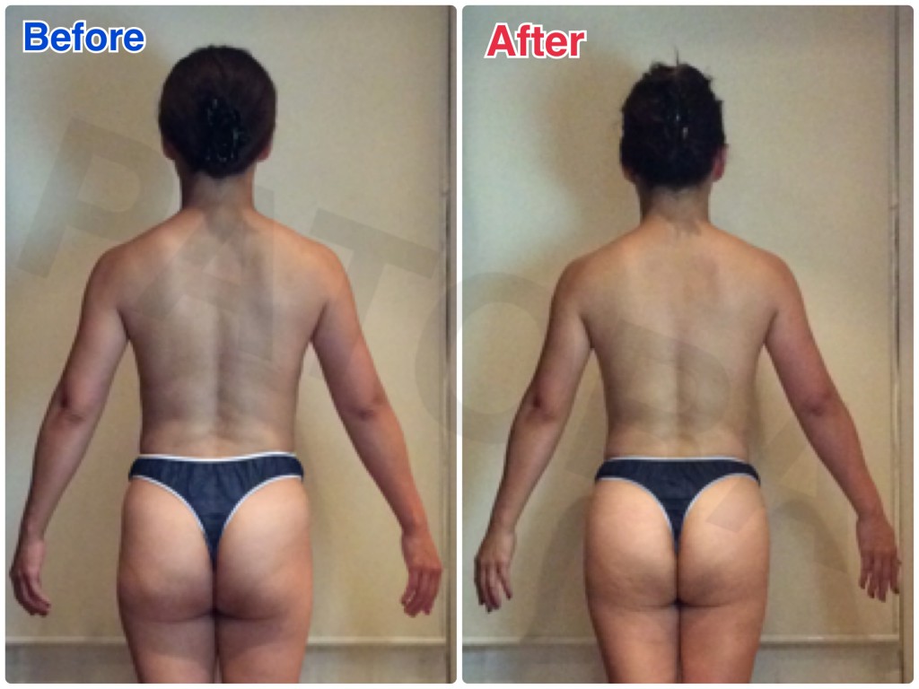 腰に機械をあてて筋肉を伸ばしましたので、お尻も小さくなっています!